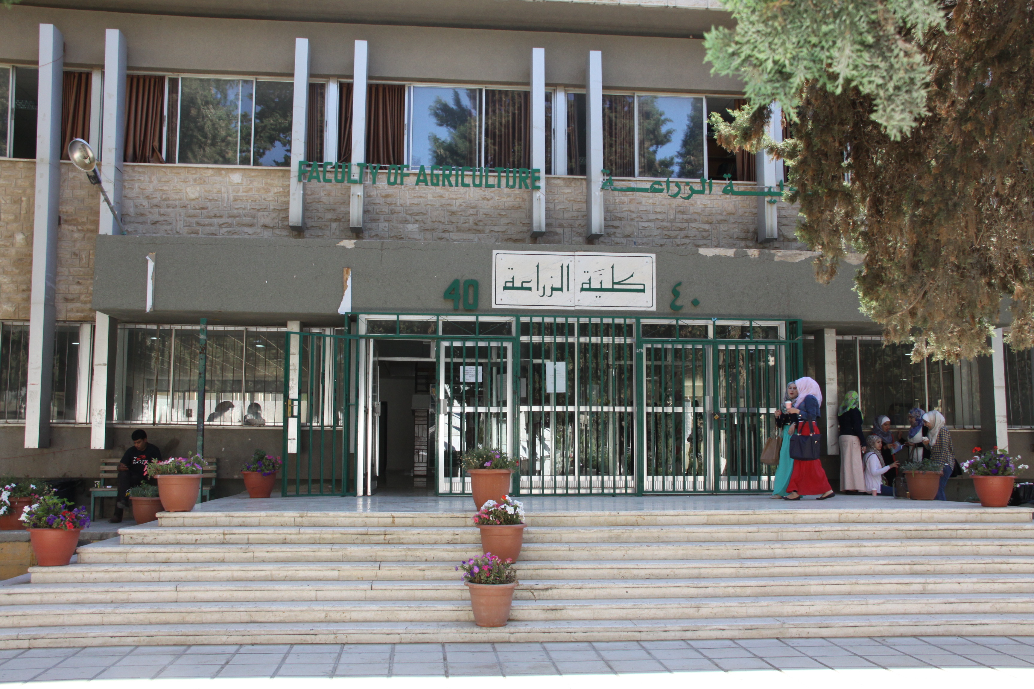 تأسست كلية الزراعة في الجامعة عام 1973 وتضم قسم البستنة، وقسم الإنتاج الحيواني، وقسم التغذية والتصنيع الغذائي، وقسم الأراضي والمياه والبيئة، وقسم الاقتصاد الزراعي وإدارة الأعمال الزراعية، وقسم وقاية النبات. تعتبر كلية الزراعة من أقدم كليات الجامعة الأم وهي من أهم روافد القطاع الزراعي في الأردن وعموده الأصيل فمنها تخرج العديد من الشخصيات القيادية والنواب والأعيان. وكلية الزراعة شاهد حقيقي على تطور القطاع الزراعي ومنبع الخبرات الزراعية على مستوى الوطن العربي والأقليم. يتكون مبنى الزراعة من طابقين يضم مكاتب الإدارة وهيئة التدريس، ويوجد به خمسة وعشرون مختبراً للبحث العلمي لطلبة الدراسات العليا وعمل الباحثين بالإضافة إلى ثماني قاعات للتدريس، وخمس قاعات للندوات، وقاعة للمزارعين، وقاعة مطالعة، وقاعة لطلبة الدراسات العليا والهيئة التدريسية، ومختبراً للحاسوب، كما أن المبنى يحتوي على ثلاث مدرجات، ويضم المبنى مركز المياه والطاقة والبيئة